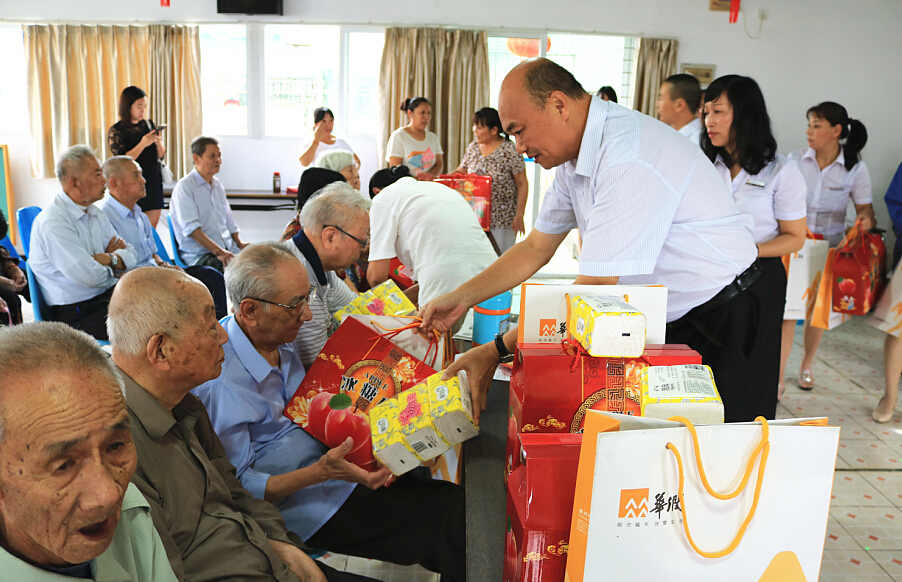 工会主席郑慈滨向驻院老人表示节日的祝贺。他说:今天是重阳节,福州华润燃气公司祝你们节日快乐,健康长寿,祝你们晚年幸福。