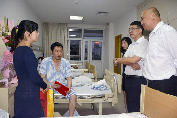 10月24日总经理陈建清、工会主席郑慈滨到医院看慰问刘佳奇, 为他送上员工爱心捐款及困难补助金,陈总首先表达了公司全体员工对他的关心与关爱,并鼓励他树立战胜疾病的信心,祝愿他早日恢复健康,重返工作岗位。