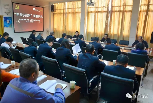 12月30日下午,公司党委在公司A-8会议室举行首个“党员示范岗”授牌仪式,公司党委副书记、纪委书记陈秋、公司党委委员张斌、谢长健及各党支部书记、支委出席了会议。会议由公司党委委员、副总经理张斌主持。