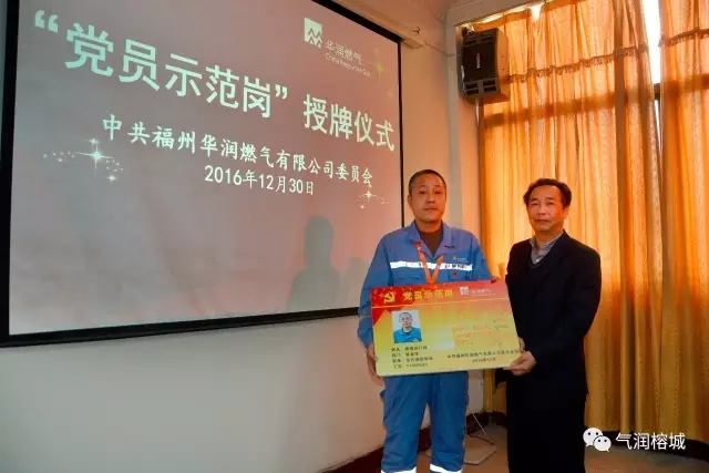 这次授牌仪式是公司党委从2016年9月起在公司各党支部范围内开展了以“亮身份、树形象、显作用、做标杆”为主题的“党员示范岗”创建活动以来首次进行。创建活动开展三个月来,各党支部积极组织开展,管网运行部党支部按照“党员示范岗”的创建标准(具体表现为:创建氛围浓、作一份承诺、结一个对子、树一面旗帜/做标杆)率先在巡线车间北片巡检班班长党员林金华岗位进行创建“党员示范岗”活动,经组织考核,考核成绩优秀,报公司党委会研究审批后命名。