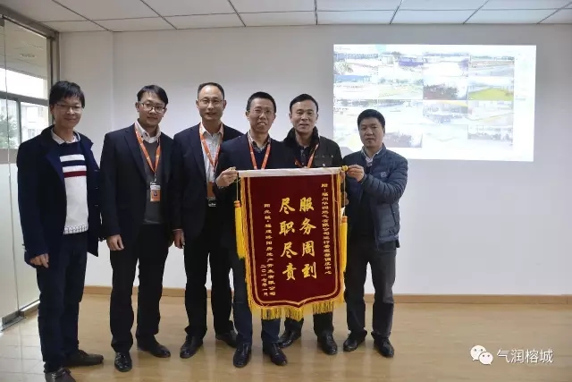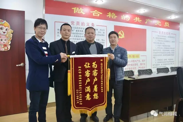 在岁末年终之际,为保障人民群众能够过一个红红火火的新年,公司关注民生,重点紧抓各新建楼盘通气点火工作,获得用户高度赞赏。1月19日,阳光城福建臻阳房地产开发有限公司负责人莅临我司,分别向客服部和运行管理部送上锦旗感谢我司周到的服务。