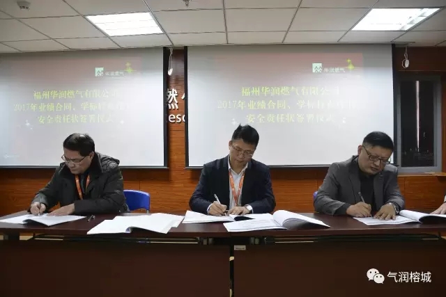 会上陈总还与各单位负责人及其分管领导分别签署了2017年业绩合同、学标杆责任书和安全责任状。